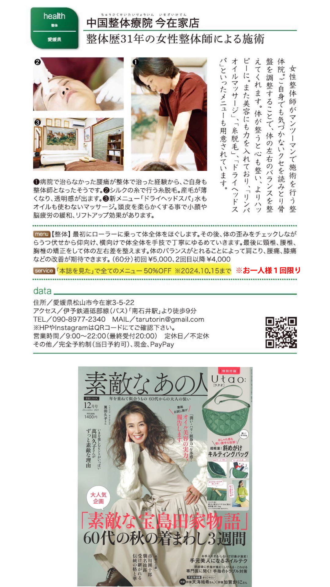 - ●2023.10.16 宝島社月刊誌『素敵なあの人』に当院掲載中。お得な情報があるかも!是非ご覧下さい → ここをクリック